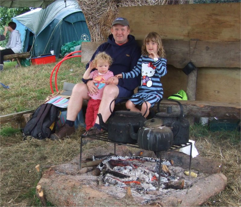 Sitting round the fire in the Woodland Crafts Area waiting for a cuppa...
